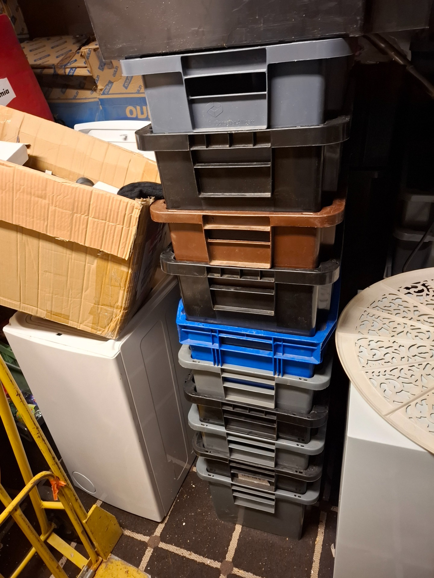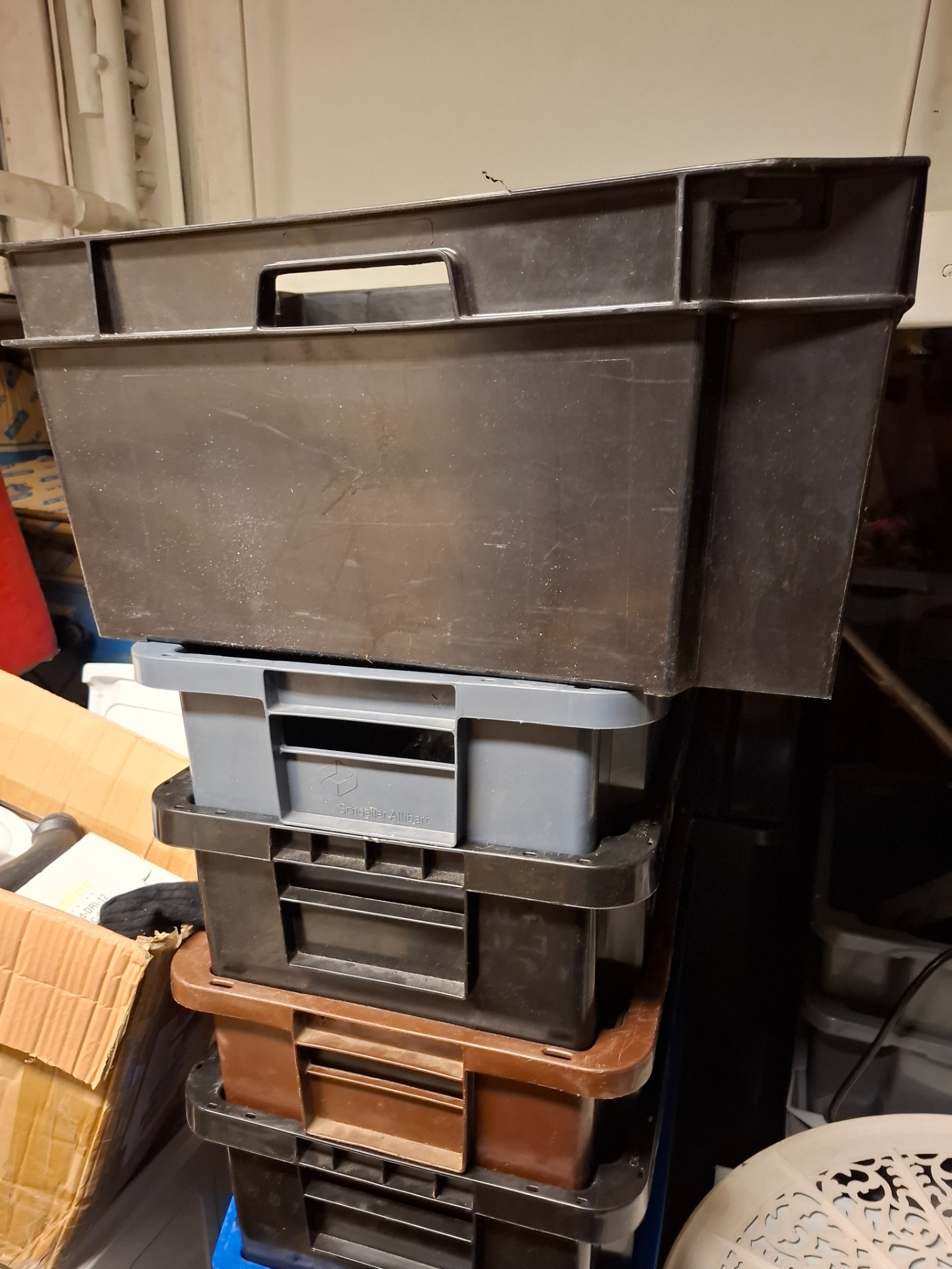 erä käytettyjä muuttolaatikoita.